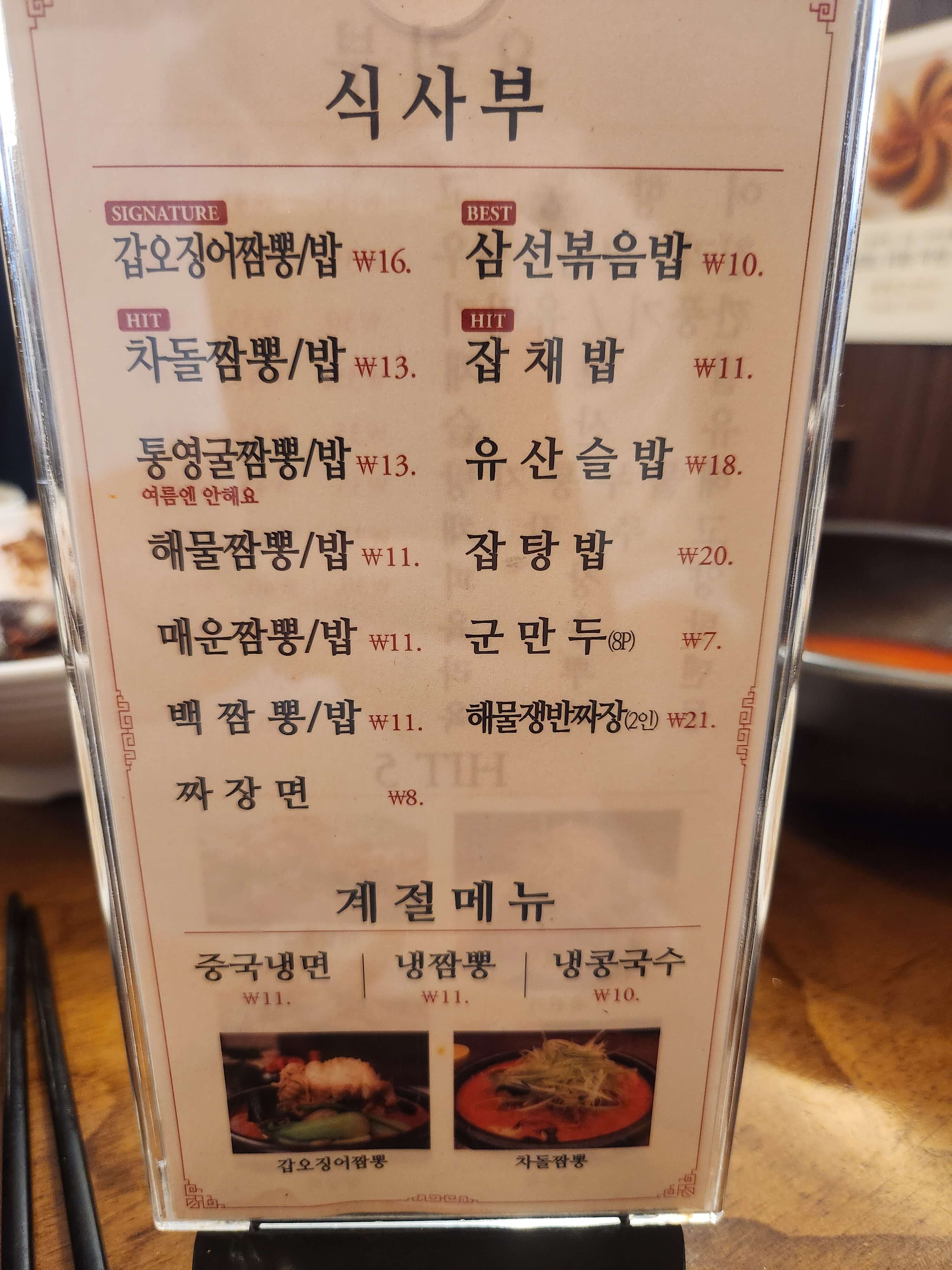 ํน์ด ๋ฉ๋ด: ํด๋ฌผ์๋ฐ์ง์ฅ (2์ธ) – 21,000์ / ๊ตฐ๋ง๋ – 7,000์